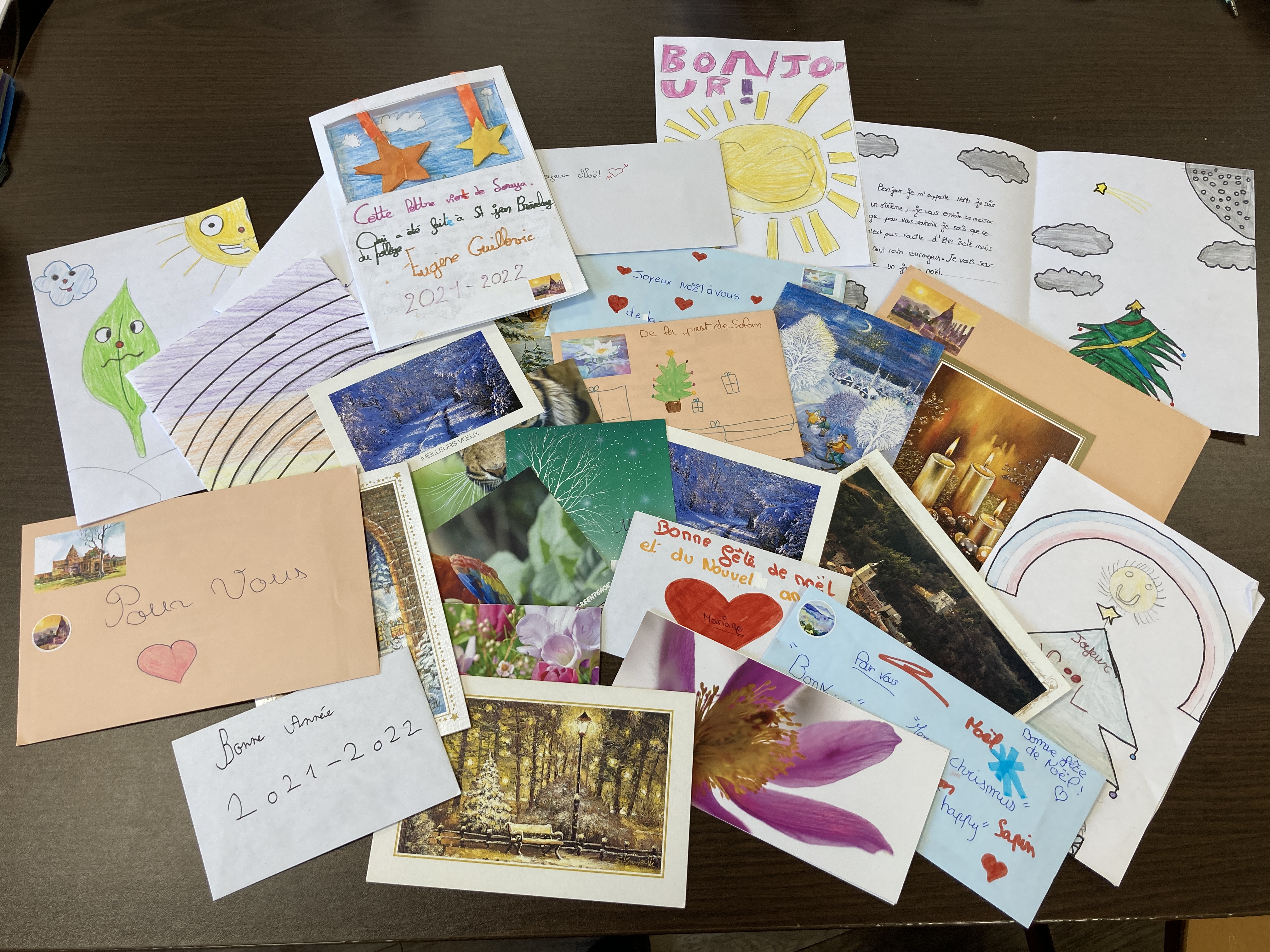 Mi-novembre, les élèves de 6°A et 6°B ont participé au projet « 1 carte, 1 plume, 1 sourire »organisé par la boutique Rozenn Reliure de Larmor-Baden. Chaque élève a préparé une petite carte postale, accompagnée parfois de dessins, à destination d’une personne âgée. Les élèves n’ont pas manqué de créativité pour égayer le quotidien de leurs aînés. Les cartes sont désormais prêtes et seront déposées sous forme de calendrier de l’Avent dans les maisons de retraite morbihannaises. Nul doute que les résidents auront hâte de les lire !