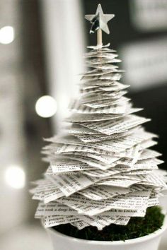 Des piques à brochettes au fond des tiroirs? En empilant des carrés de feuilles de plus en plus petits, vous obtiendrez un joli sapin à poser.